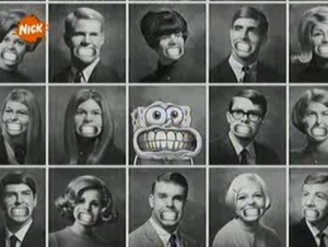 - Das Gebiss, das SpongeBob vom Fotografen erhält, ähnelt dem offiziellen „Meerjungfraumann-und-Blaubarschbube-Gebiss“ aus den Meerjungfraumann-und-Blaubarschbube-Cornflakes.