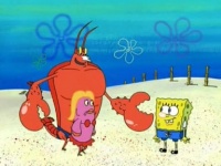 Larry: „Hey, wir haben Kundschaft. SpongeBob, lass mich das machen. Ich hab den ganzen Tag noch keine Action gehabt.“