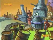 Sandy: (hält ihm den Mund zu) „Jetzt reiß dich mal zusammen! Das nächste wird ein richtiges Kinderspiel! Das Heu im Nadelhaufen finden!“ (wirft einen kleinen Heuhalm in einen riesigen Nadelhaufen)