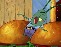 Plankton: „Ich muss einen von diesen Burgern mit in mein Büro nehmen, wegen der, äh ähm… Brötcheninspektion!“