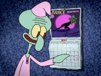 Thaddäus: „Ah, endlich hab ich Wochenende! Und das ist kein ganz normales Wochenende, sondern das Wochenende, an dem SpongeBob und Patrick campen gehen! Hach, wär das toll, wenn sie sich im Wald verirren und nie mehr zurückkommen würden!“ (stellt sich vor, wie SpongeBob und Patrick ziellos in einem Wald umherlaufen)