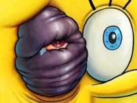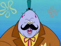 SpongeBob: „Er war gestern Abend nach einer langen Schicht! Ich ging von der Arbeit nach Hause - allein -, als plötzlich wie aus dem Nichts Wahnsinnsfisch hinter mir stand! Er zog mir einen riesigen Reifen über den Schädel! Da stand er und schaute hämisch zu mir herunter, aber ich sprang auf und trat ihm das Haarteil mit einem Karateschlag von der Rübe! Er schämte sich so, dass er weinend nach Hause rannte und einen Bach aus Tränen hinterließ, aus dem ich mir freudig etwas in meinen Siegeshumpen schöpfte, um es als einen erfrischenden Trunk zu genießen!“