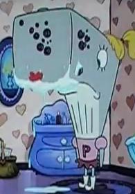 - (Seifenblasenszenenwechsel. SpongeBob kehrt mit einer Schaufel zurück in Perlas Zimmer.)