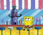 SpongeBob: „Jetzt geht’s los! (versucht krampfhaft, die Flasche zu öffnen) Ob ich sie vielleicht kurz unter heißes Wasser halten könnte?“