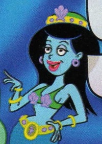 Königin Amphitrite ist eine blaue Meerjungfrau. Während ihre Schwanzflosse dunkelblau ist, ist der Rest ist hellblau. Sie hat schwarze Haare und trägt eine Krone. Außerdem trägt sie einen grünen Bikini mit zwei Muscheln drauf sowie mehrere goldene Ringe auf den Armen. Sie trägt einen goldenen Gürtel um ihren Bauch.