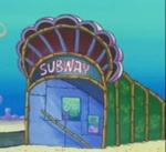 Die Bikini Bottom Subway (dt. Bikini Bottom U-Bahn) sieht man unter anderem kurz in der Episode Deins, meins und meins. Als SpongeBob und Patrick sich um das Spielzeug des Krabbenkindermenüs streiten, rollen sie aus einem Bus hinaus in die Station und dort in eine Bahn. An der nächsten Haltestelle kommen sie über eine Treppe wieder heraus.