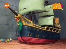 Das Schiff hat am Bug eine lange Spitze, unter der sich eine Meerjungfrauen-Figur befindet. Des Weiteren hat es mehrer verschieden große Segel und im Unterdeck Kanonen. Es ist rot-schwarz angestrichen, das Geländer hat einen gelben Ton.
