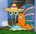 • Als SpongeBob Thaddäus den Rücken einrenken will, hat Thäddäus einen verdrehten Hals.