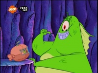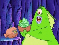 - (SpongeBob und Patrick werden mit Geld überflutet. Die beiden servieren dem Monster nun haufenweise Abfallwich’s. Schließlich ist das Monster vollgefressen und erschöpft.)