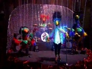 | + | Sie treten erstmals und bisher zum einzigen Mal in der Episode [[SpongeBobs Hausparty (Episode)|SpongeBobs Hausparty]] auf [[Patchy]]s Party auf. Sie sind wie ihr Fan [[Potty]] anscheinend nur Marionetten. Zu ihren Songs gehört „[[Underwater Sun]]“. | ||