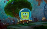 Er geht gemeinsam mit Plankton zu seinem Haus, da er Gary für sein Team gewinnen möchte. Dieser ist jedoch auch wahnsinnig geworden und hält sich für den König der Schnecken. Enttäuscht gehen SpongeBob und Plankton zu einem einsamen und friedlichen Ort, an dem sie überlegen, wie sie Bikini Bottom retten können. Plankton kommt auf die Idee, dass sie mithilfe einer Zeitmaschine die Ereignisse rückgängig machen können. Gemeinsam flüchten an zahlreichen Wachen vorbei, um Karen, die gefangen in Planktons Restaurant ist, zu holen, was ihnen auch gelingt. In einer verlassenen Gaststätte bauen sie gemeinsam die Zeitmaschine. Nach mehreren Startschwierigkeiten, erst reisen sie vier Tage in die Zukunft und anschließend ins Weltall, wo sie auf einen geheimnisvollen Delfin namens Bubbles treffen, gelingt es ihnen, zurück zu dem Tag zu reisen, als die Geheimformel verschwand und nehmen die Formel mit. Burger-Bart eröffnet währenddessen sein neues Restaurant, wo er die Krabbenburger verkauft. Sandy hat zeitgleich den Zettel auf ihrer Kuppel entdeckt und ist der Meinung, dass ein Opfer nötig ist, um die Krabbenburger wiederzuholen. Doch genau in den Moment kommen SpongeBob und Plankton mit der Geheimformel in die Krossen Krabbe. Jedoch hat SpongeBob die Fälschung von Plankton in der Hand, was in einem großen Streit zwischen all den Gästen im Restaurant ausartet. Nun soll SpongeBob geopfert werden, doch kurz vor der Opfergabe riecht er plötzlich den Geruch der Krabbenburger. Zusammen verfolgen sie die Spur des Geruches und gelangen schließlich an die Wasseroberfläche an, was sich als Problem herausstellt, da die Freunde ja nicht über dem Wasser atmen können. In dem Moment kommt der Delfin Bubbles hinzu, den SpongeBob und Plankton im Weltall trafen. Er sorgt dafür, dass die Freunde auch an Land atmen können. Zusammen gehen sie an den Strand, wo sie den Stand von Burger-Bart entdecken. Gerade als sie sein Restaurant angreifen, schnappt sich der fiese Pirat das magische Buch und schreibt nieder, dass sich die Freunde auf der Pelikan-Insel befinden. Alles was in dem Buch niedergeschrieben wird, passiert auch in der Realität. Als sie auf der Insel angekommen sind, fällt Sandy ein, dass sie den Zettel, der auf ihrem Haus lag, mitgebracht hat. Dort schreibt SpongeBob nun auf, dass er und die anderen zu Superhelden mit magischen Fähigkeiten werden und wieder in Burger-Barts Restaurant sind. Dort angelangt versuchen sie, an das Buch zu gelangen, doch Burger-Bart flieht, wobei ihm jedoch das Missgeschick passiert, dass das Buch in den Ofen in seinem Schiff fällt und verbrennt. Gemeinsam schaffen sie nun auch, die Geheimformel wieder an sich zu reißen und zurück in die Krosse Krabbe zu gelangen. Dort angekommen kann SpongeBob wieder Krabbenburger braten und alles ist wieder beim Alten. Die Kunden genießen ihre Burger und Plankton versucht weiterhin, die Geheimformel zu stehlen. Zu Schluss sieht man den geschlagenen Burger-Bart, der gemeinsam mit den Möwen und dem Delfin rappt.[Bearbeiten] Videospiel