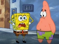 | − | '''SpongeBob''': | + | '''SpongeBob''': „Guah, ich hab gesagt… (''läuft gegen etwas'') Au!“ <br> |