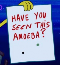 SpongeBob: (ruft) „Haustier entlaufen! Hat jemand diesen Einzeller gesehen? Haustier-Alarm! Halten Sie Ausschau nach einem entlaufenden Einzeller! (zu Fred) Haben Sie diesen Einzeller gesehen?“