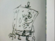 - Thaddäus schaut sich ein Bild ,auf dem SpongeBob zu sehen ist, an.
