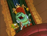 (SpongeBob steht beim König und flüstert ihm etwas zu.)