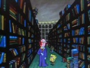 SpongeBob: „Whaaaaaaaaaaaaa! Wow, jede Menge Bücher. Ich frag mich wo Gary ist.“ (läuft herum) „Gaaaary? Hä? Entschuldigen Sie, Sir, haben Sie…