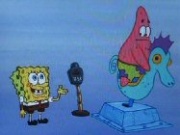 - Echt aussehender Fischkopf: „Neues vom Tage. Unser Mitbürger SpongeBob Schwammkopf hat nur noch wenige Stunden um seien Aufsatz zu beenden und dennoch trödelt er weiter herum“ (kommt aus dem Fernseher) „Wann lernt er's endlich?“