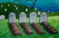 - (Trauermusik einer Orgel. Die Gräber der vier Musiker sind zu sehen. Auf jedem Grabstein steht „R.I.P.“ (Rest in Peace, dt.: Ruhe in Frieden). Anscheinend haben sie die Aufnahme von Patricks Song tatsächlich nicht überlebt.)